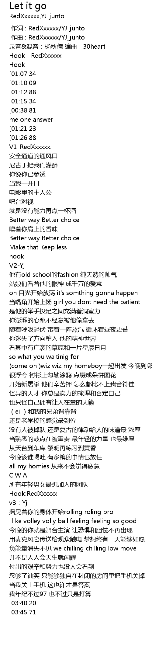 | [00:01.000] | zuo qu : RedXxxxxx YJ_junto |
