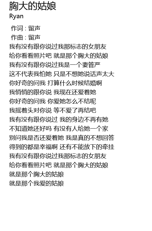 | [00:22.189] | gěi nǐ kàn kàn zhào piān ba jiù shì nà gè xiōng dà de gū niáng |
