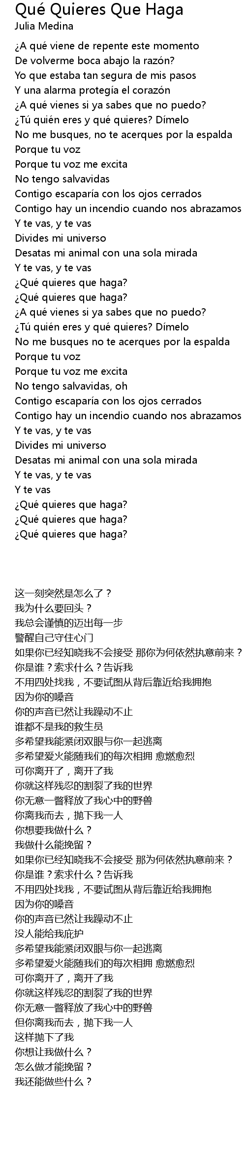 | [01:35.66] | Tú quié n eres y qué quieres? Dí melo |
