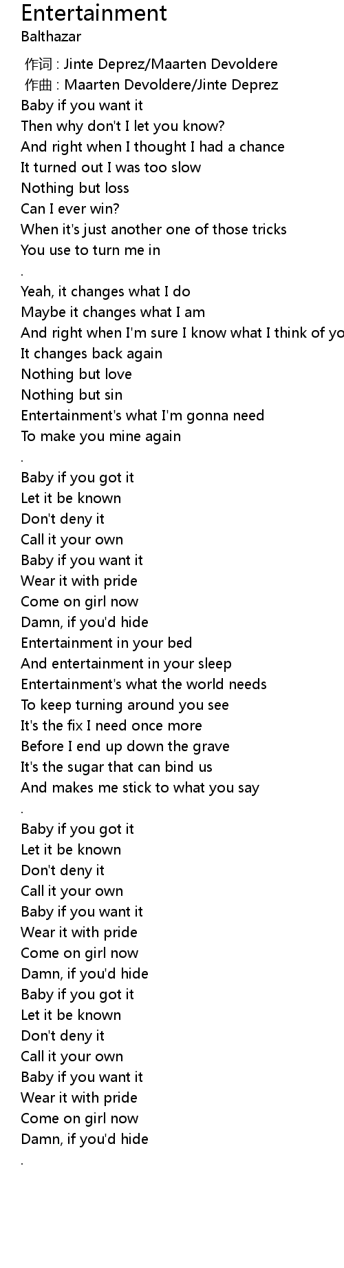 | [01:01.625] | Entertainment' s what I' m gonna need |
