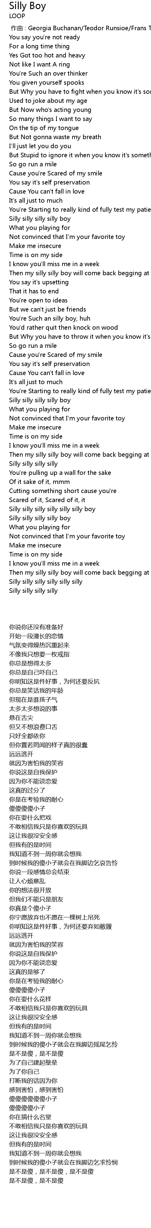 | [00:48.64] | Silly silly silly silly boy |