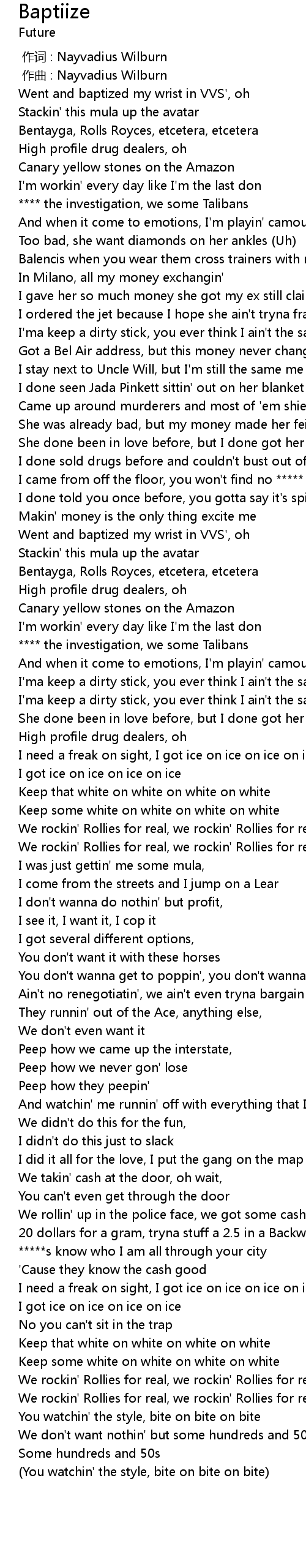 | [00:00.000] | 作词 : Nayvadius Wilburn |