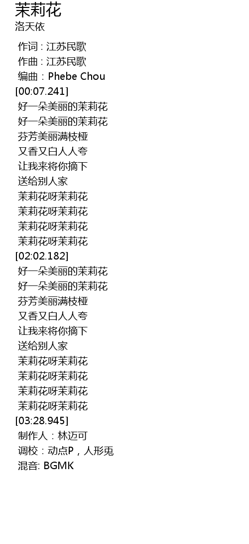 | [03:01.437] | 茉莉花呀茉莉花 |