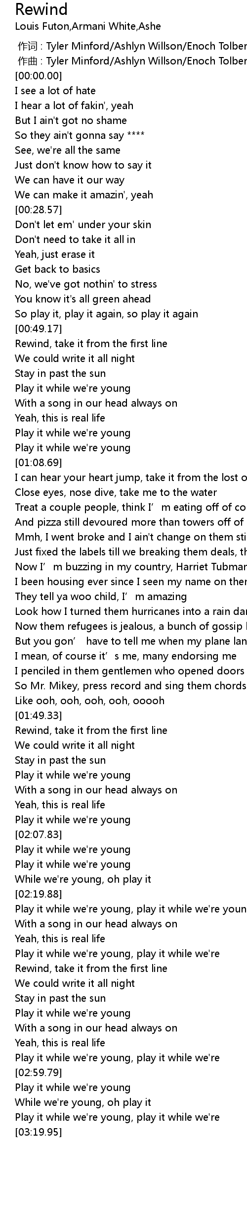 | [02:39.52] | Rewind, take it from the first line |
