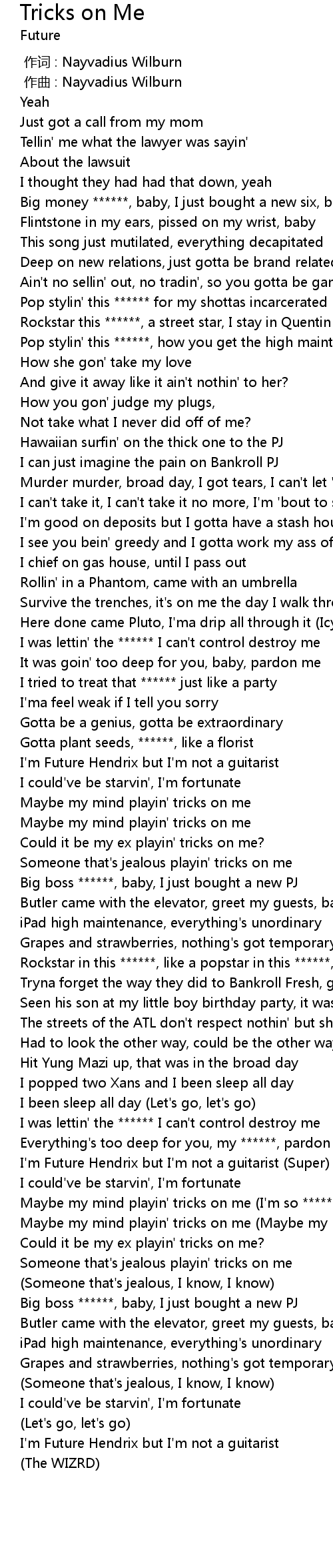 | [03:11.70] | Maybe my mind playin' tricks on me (I'm so ******' hurt) |
