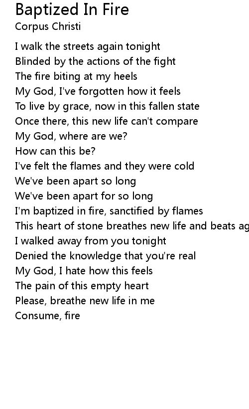 I'm baptized in fire, sanctified by flames |