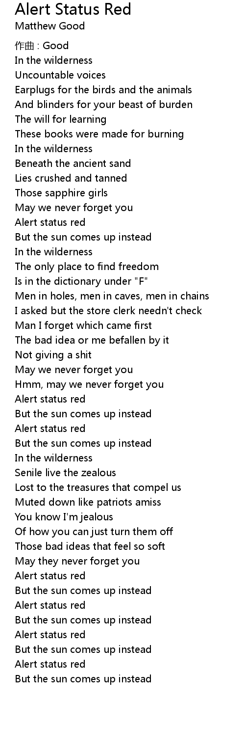 | Song | Alert Status Red |