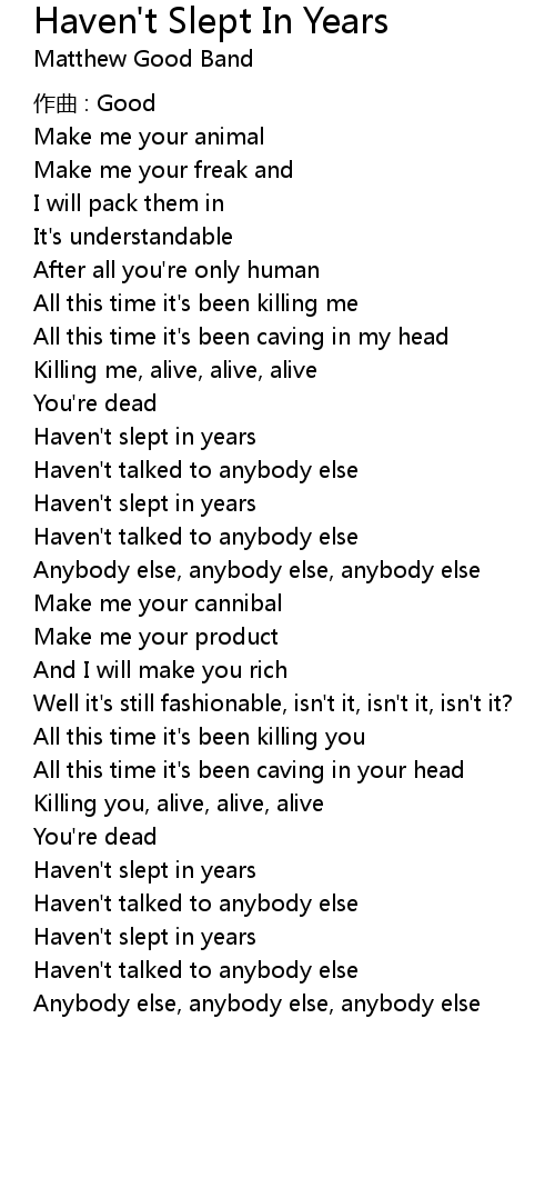 | Song | Haven't Slept In Years |