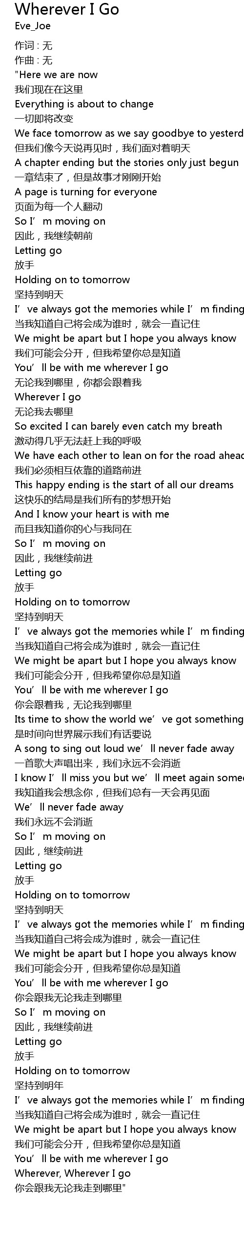 | nǐ huì gēn wǒ wú lùn wǒ zǒu dào nǎ lǐ" |
