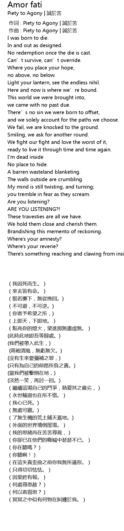 | [00:00.000] | 作词 : Piety to Agony | 誠於苦 |