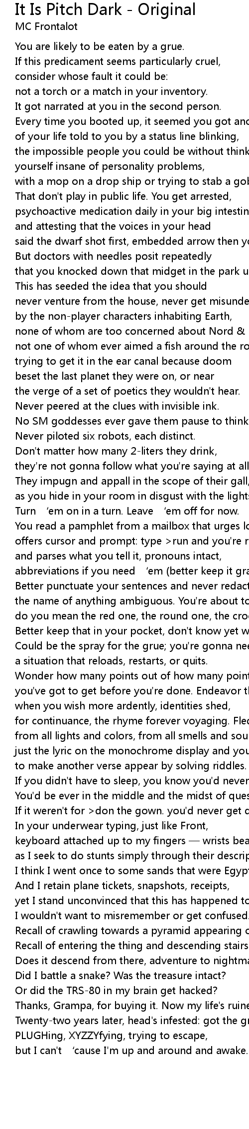| PLUGHing, XYZZYfying, trying to escape, | |