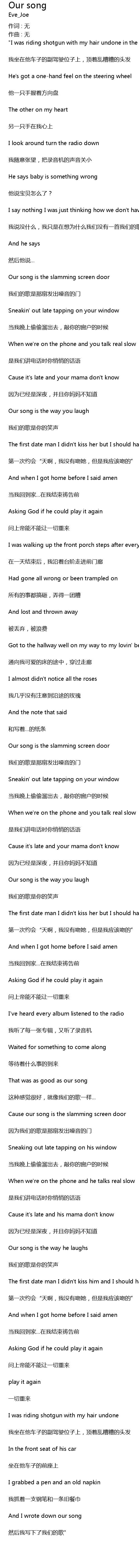 | 我说没什么,我只是在想为什么我们没有一首我们的歌 | |