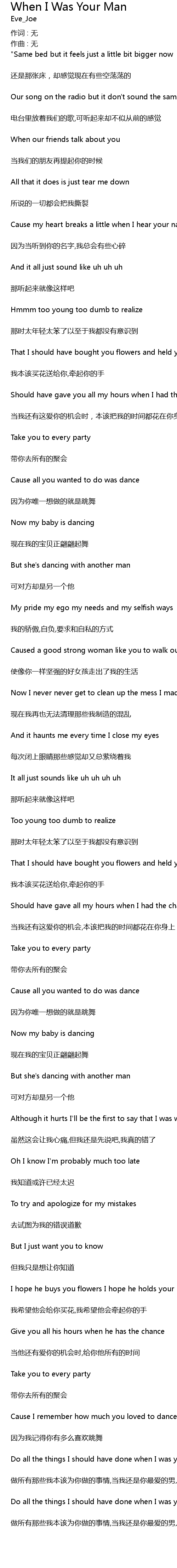 | Do all the things I should have done when I was your man | |