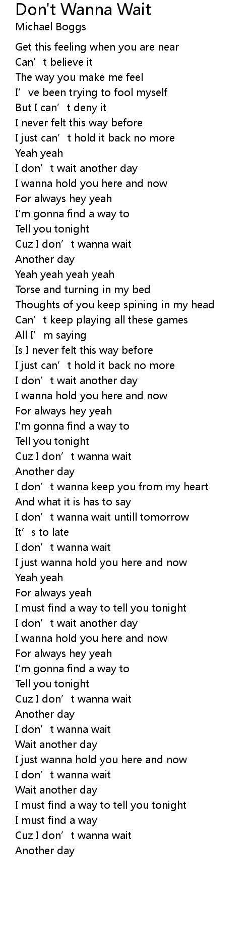 | [02:01.25] | I don’t wanna wait untill tomorrow |