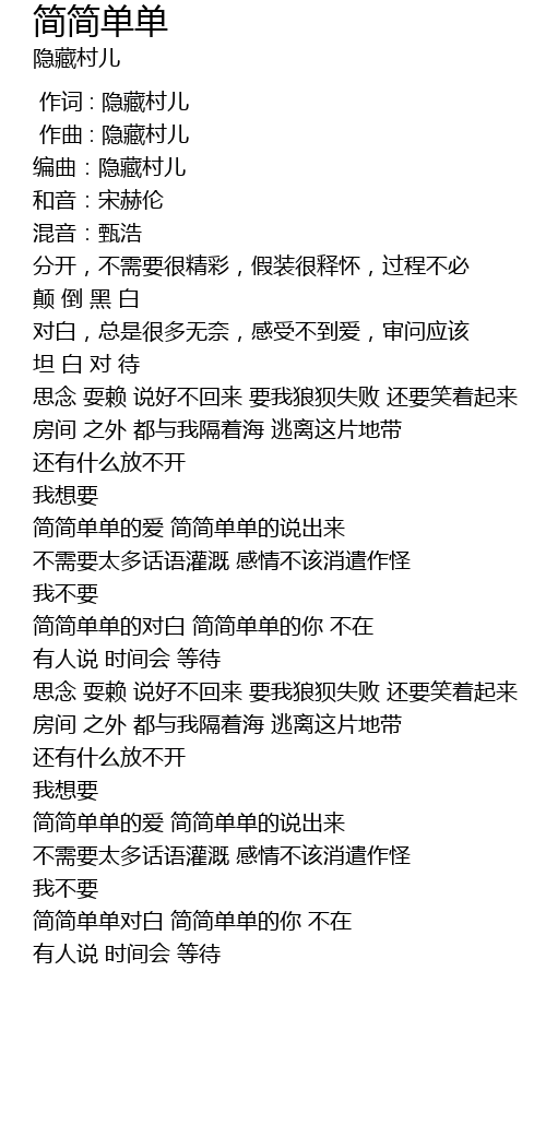 | [00:00.000] | 作词 : 隐藏村儿 |