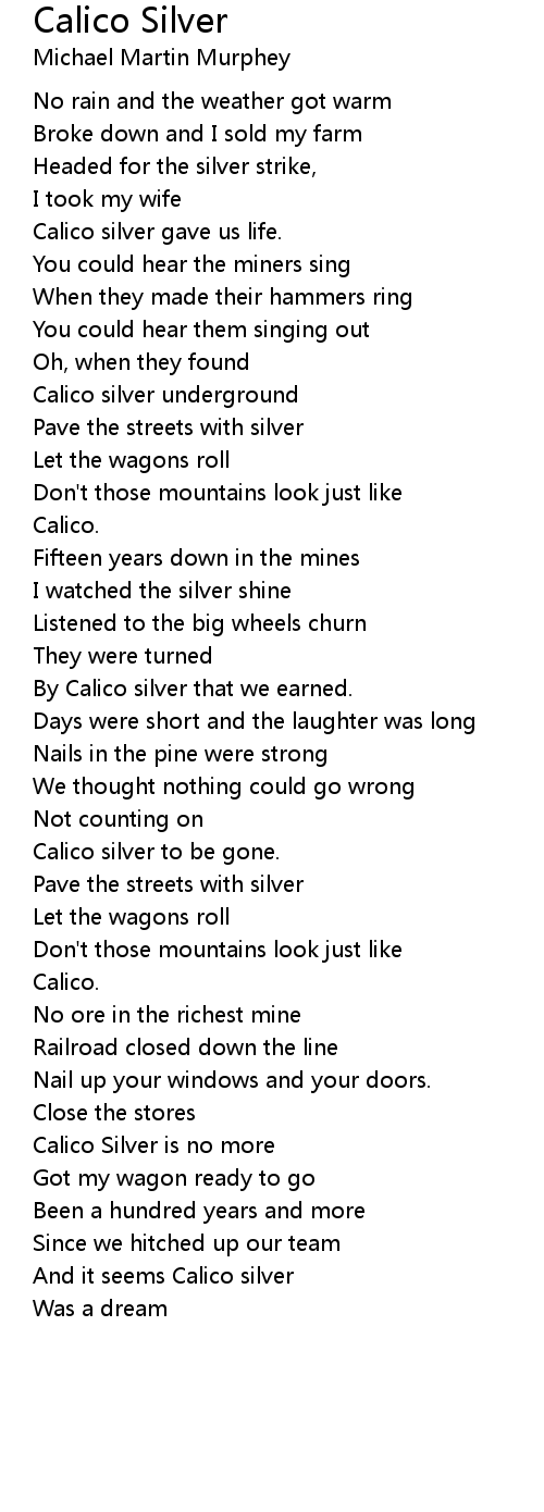 Calico silver gave us life. |