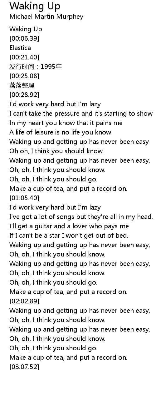 | [00:51.38] | Waking up and getting up has never been easy, |