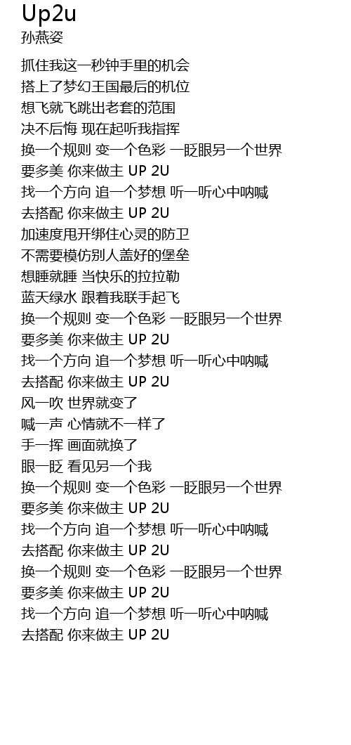 | [02:34.700] | yao duo mei ni lai zuo zhu UP 2U |