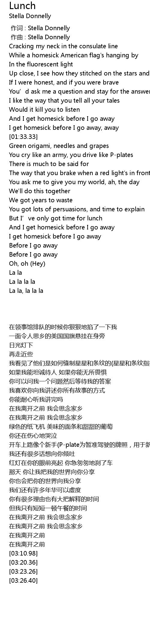 | [00:00.000] | zuo ci : Stella Donnelly |