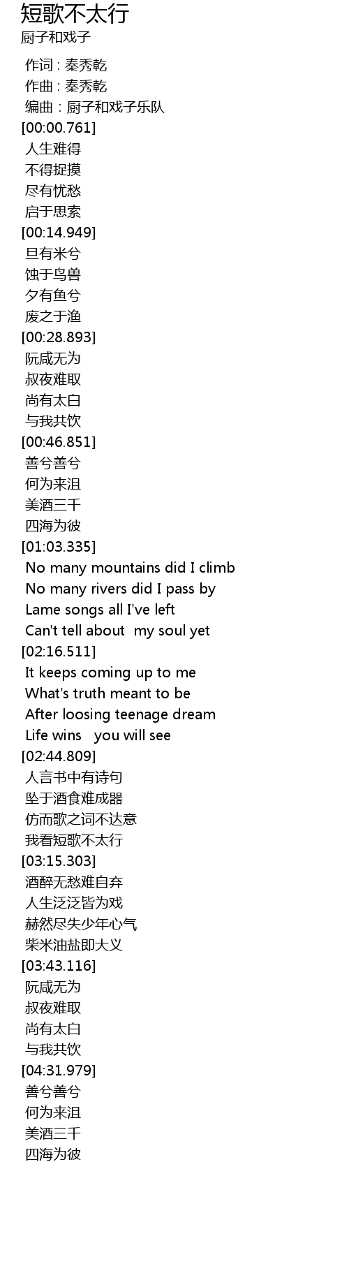 | [03:22.795] | ren sheng fan fan jie wei xi |