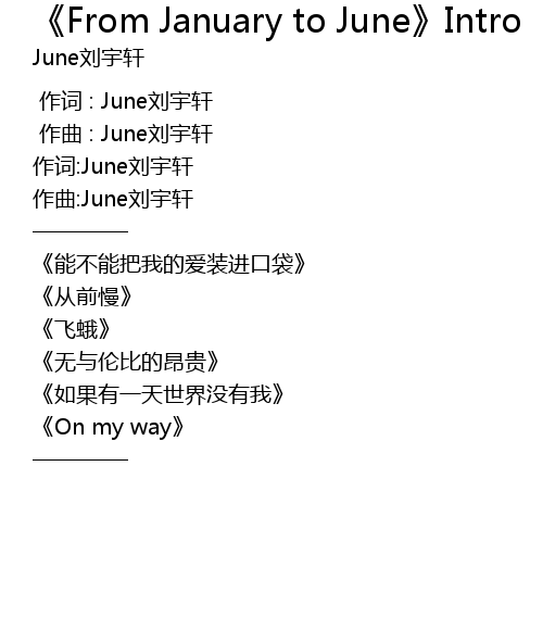 | [00:00.308] | zuo qu : June liu yu xuan |