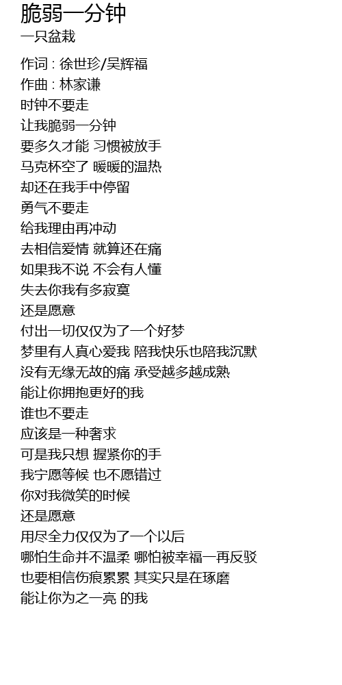 | ràng wǒ cuì ruò yī fēn zhōng | |