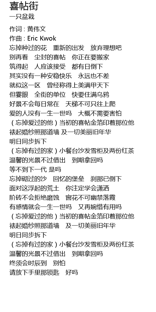 | 但霎眼 全街的单位 快要住满乌鸦 | |