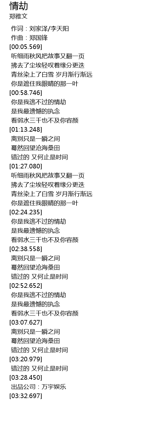 | [03:29.993] | 出品公司:万宇娱乐 |