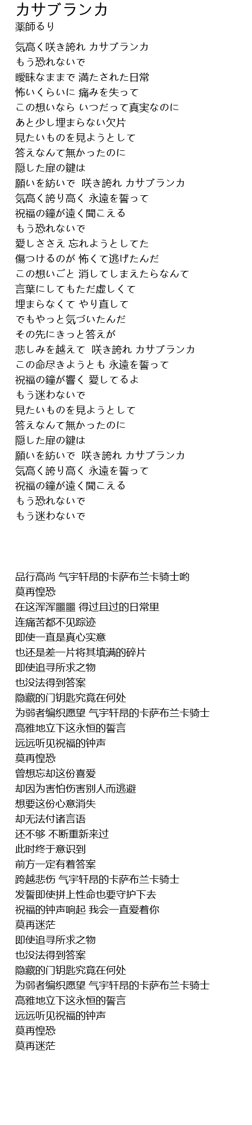 | [02:33.561] | 悲しみを越えて 咲き誇れ カサブランカ |