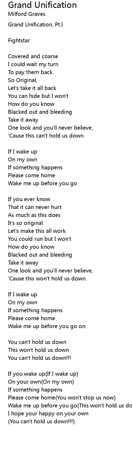 Wake me up before you go(This won't hold us down) |
