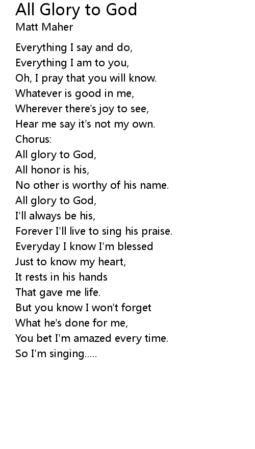 All glory to God, |