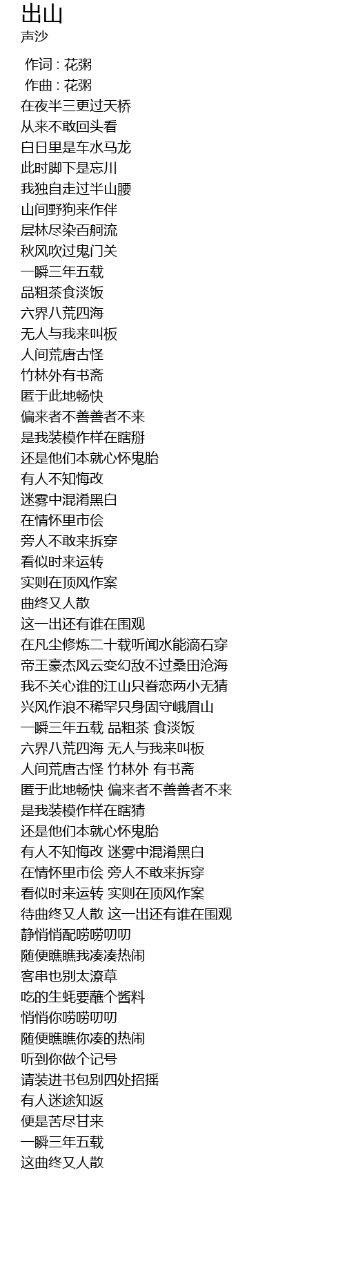 | [01:17.28] | 在凡尘修炼二十载听闻水能滴石穿 |