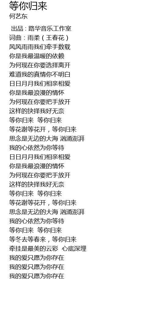 | [03:37.01] | 等冬去等春来,等你归来 |