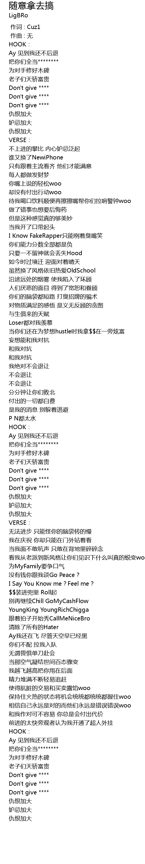 | [00:18.09] | 把你们全当******** |