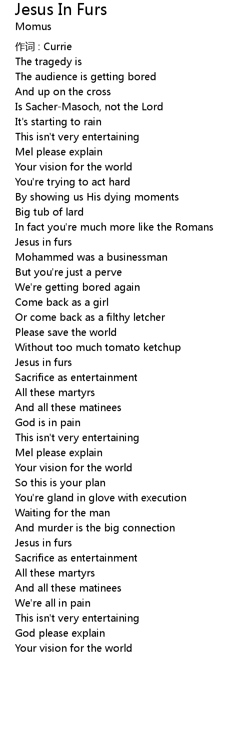 | Song | Jesus In Furs |