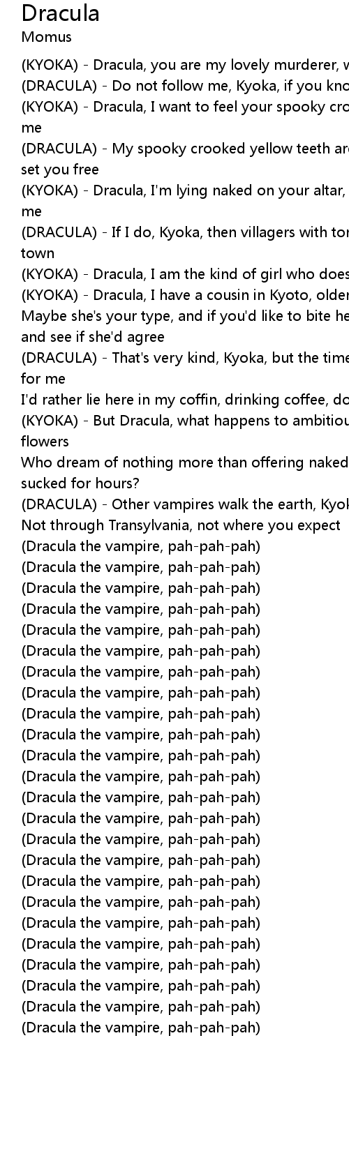 | (KYOKA) - Dracula, I want to feel your spooky crooked yellow teeth biting into me | |