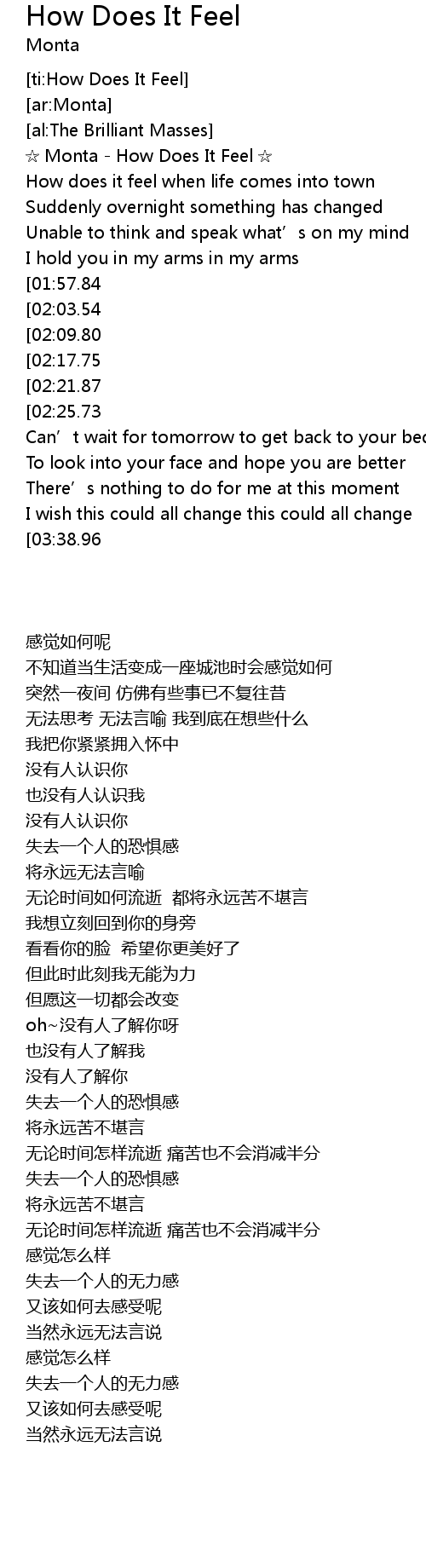 | [00:00.00] | Monta How Does It Feel |