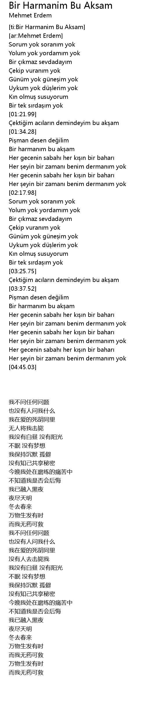 | [04:13.54] | Her eyin bir zaman benim derman m yok |