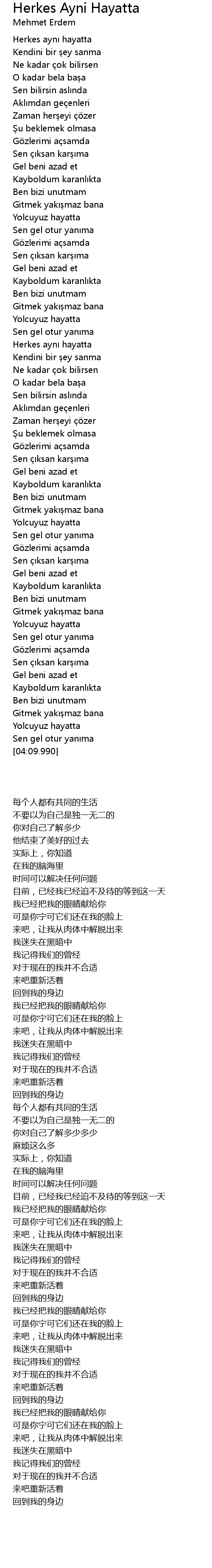 Herkes Ayni Hayatta Lyrics