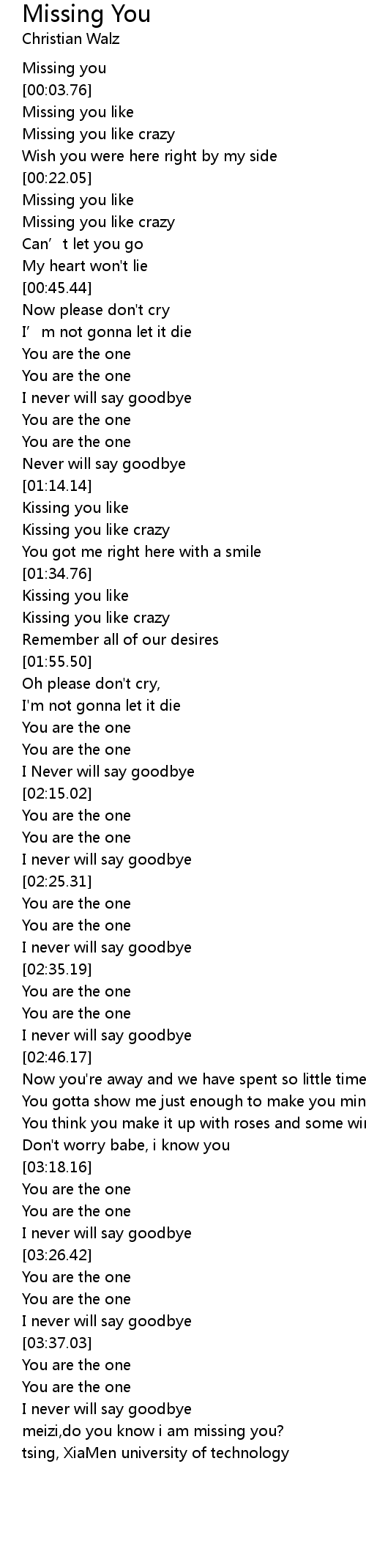 | [03:47.05] | meizi, do you know i am missing you? |