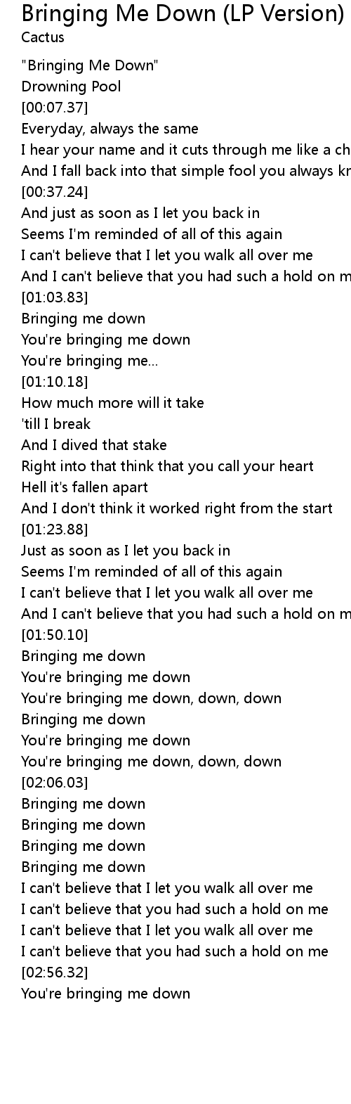You're bringing me down, down, down |