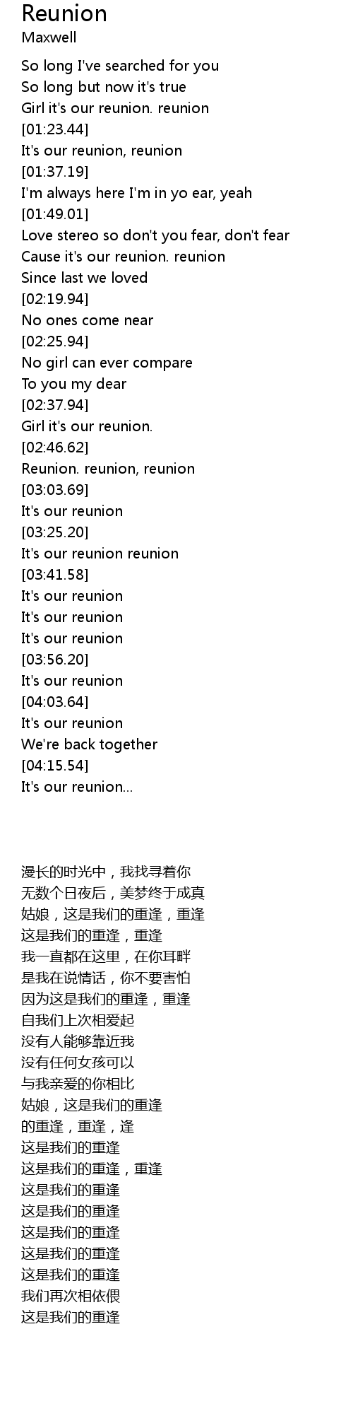 Cause it's our reunion. reunion |