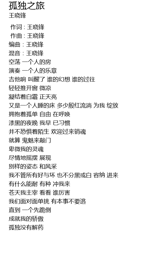 | [01:31.00] | 拥抱着孤单 自由 在呼唤 |