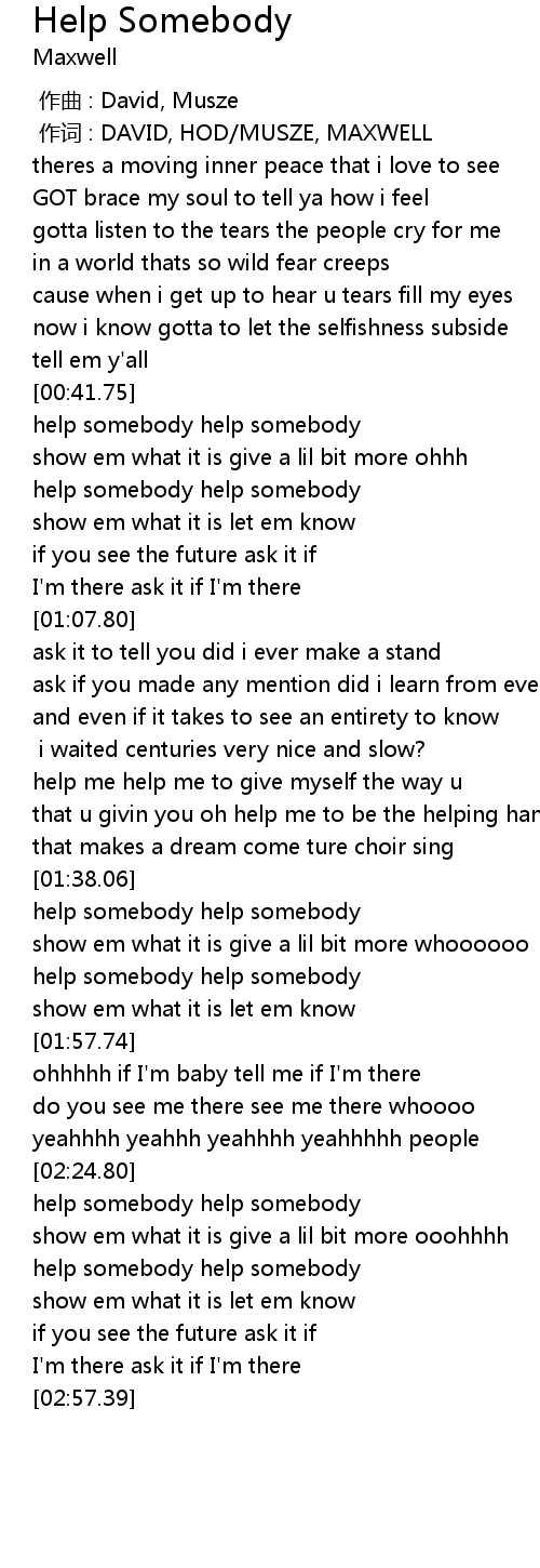 | [01:33.67] | that u givin you oh help me to be the helping hand |