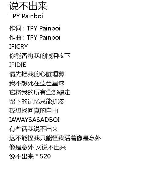 | yǒu xiē huà wǒ shuō bu chū lái | |