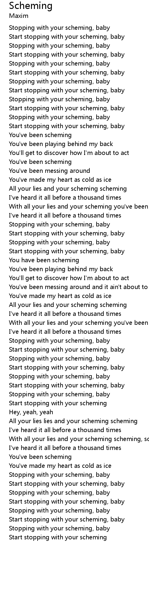 With all your lies and your scheming scheming, scheming, scheming |