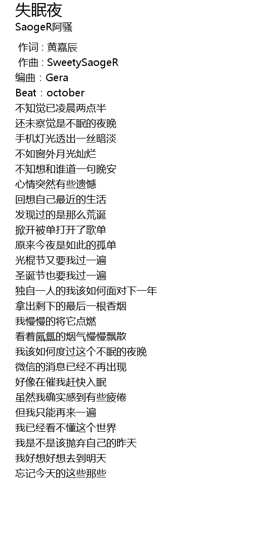 | [01:40.936] | 我该如何度过这个不眠的夜晚 |