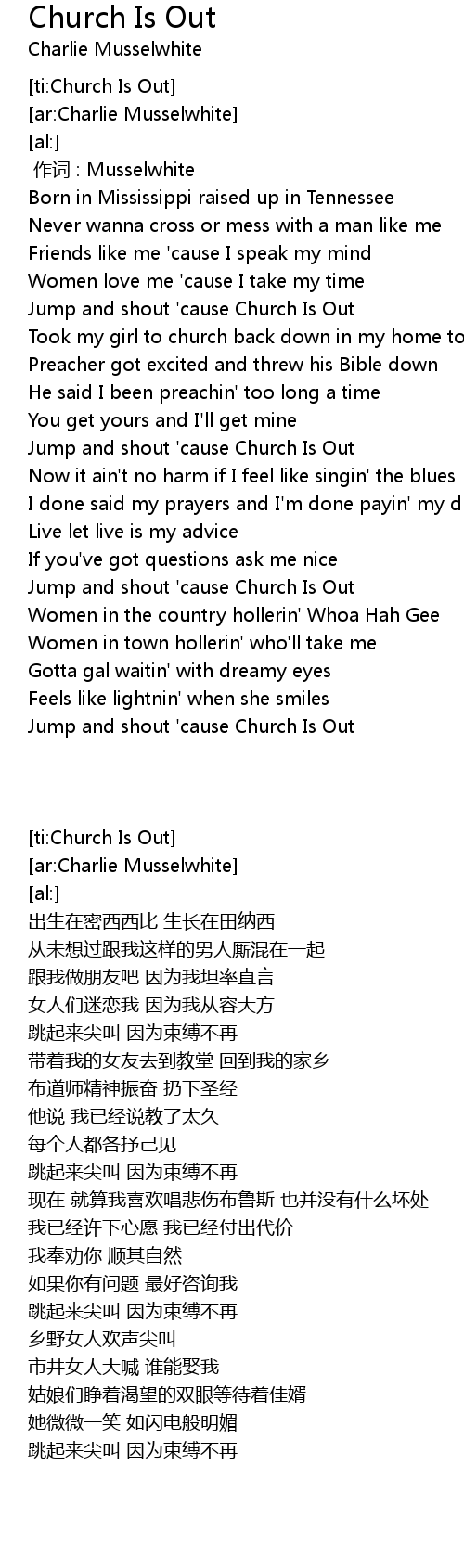 | [02:26.68] | Jump and shout ' cause Church Is Out |