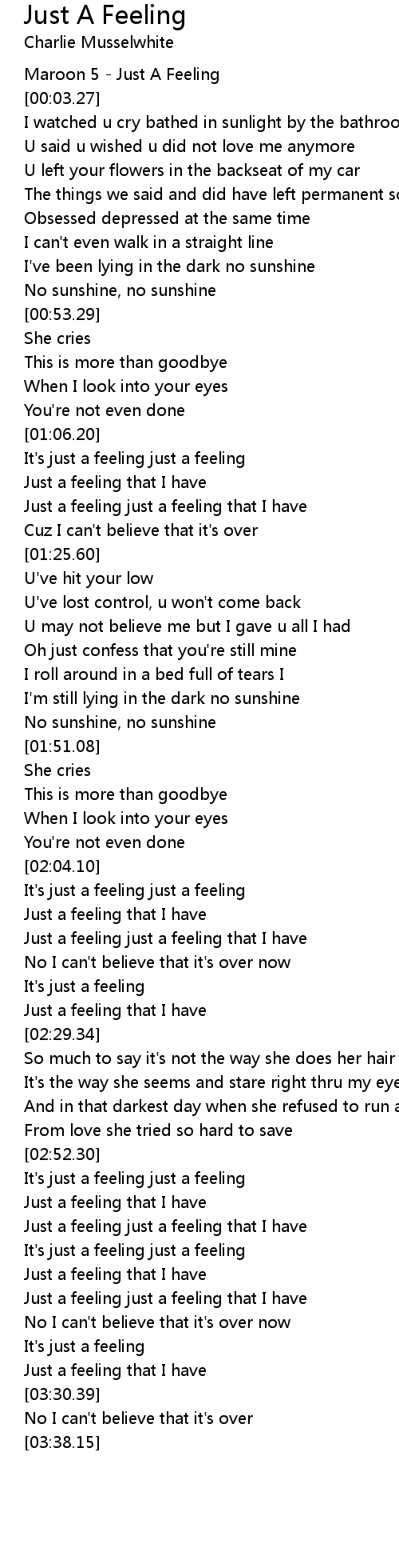 Just a feeling just a feeling that I have |