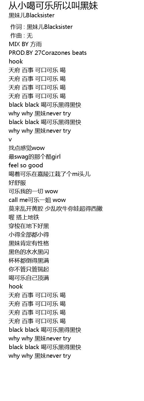 | [00:26.907] | black black 喝可乐黑得黑快 |